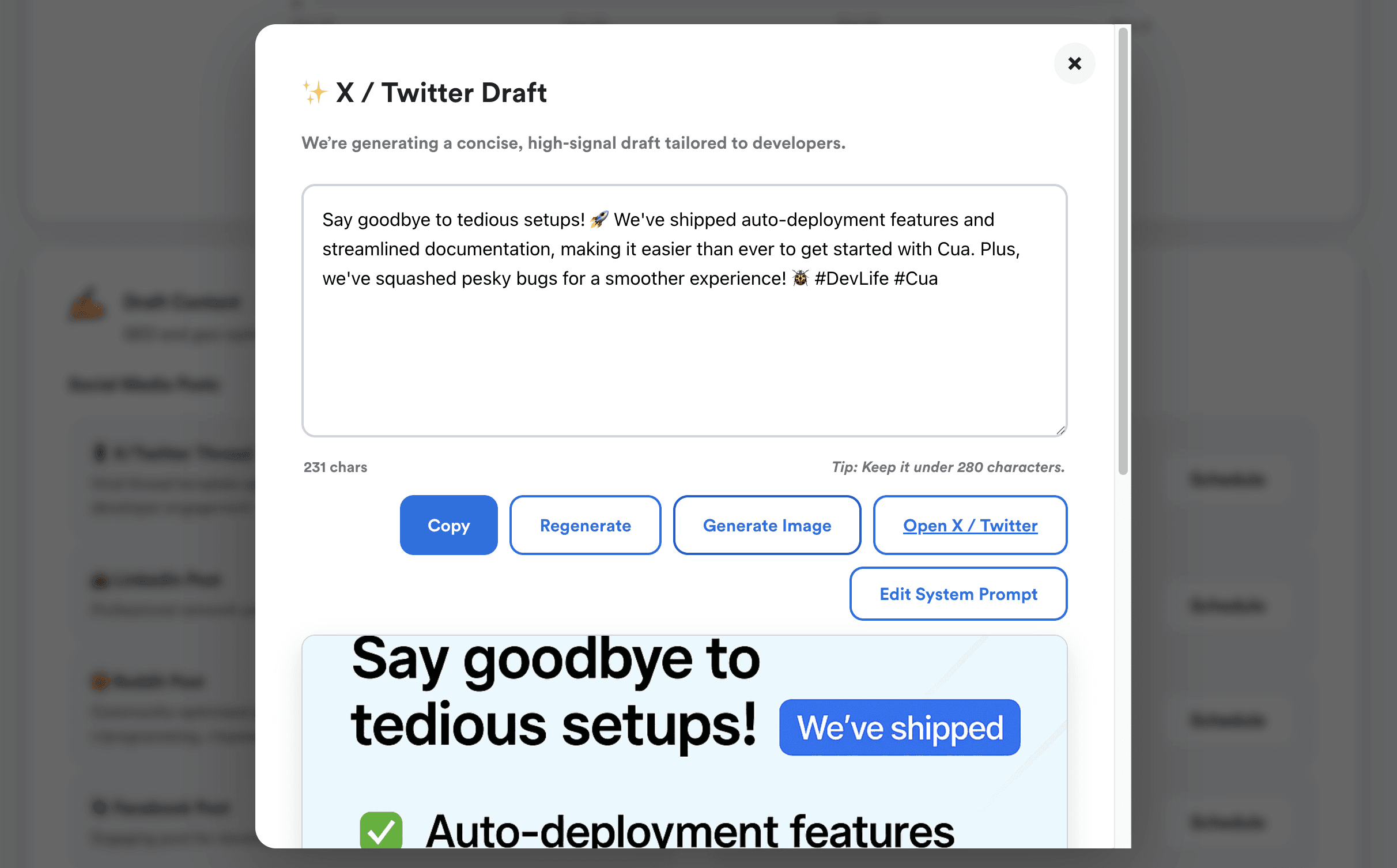 Auto-generate SEO/GEO content for socials and blogs from your commits. Rank for searches devs actually make.